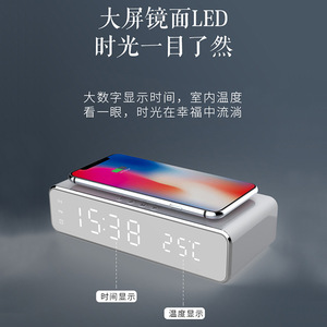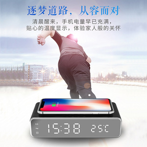 目覚まし時計無線充電デジタル時計温度計カレンダーイヤホン携帯電話無線充電器クロスボーダー商品メーカー直供