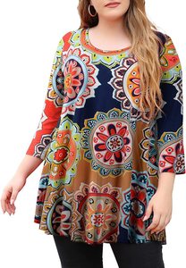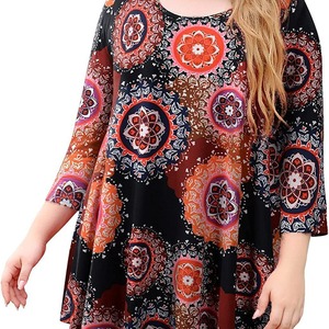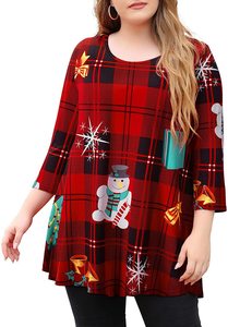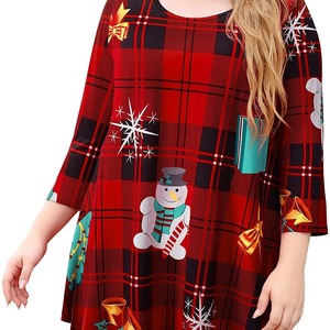 2025年アマゾン欧米女性用大きいサイズクリスマスプリントOネック長袖Tシャツトップス