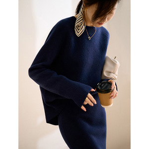 6989 # 優雅な気質! やせて見える曲線h型丸首ニット半身スカートセット秋冬