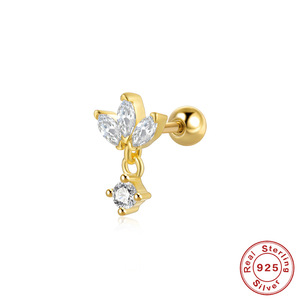 欧米ins風925純銀アレルギー防止ピアスピアスイヤリングクロスボーダーヒップホップ要素耳骨釘アクセサリー女男