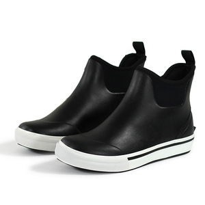 秋冬の耐摩耗性の男性の黒色の低い筒の現物の丸い頭のゴムの雨靴の甲板の靴