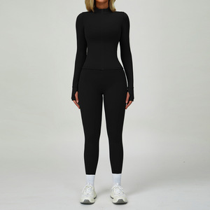 沢創裸感ヨガ服女性秋冬ファスナー長袖フィットネス服セット修身ランニングフィットネスウェア6116
