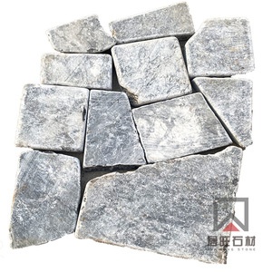 青灰色ライム石乱形石機ロール研削面不規則砕石別荘外壁床舗装石