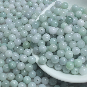ミャンマー翡翠散珠a品diy白色薄緑色老坑玉珠ブレスレットネックレス7mm