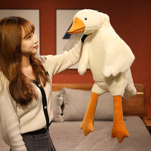 赤いネットは腹ばいになっています。ガチョウは枕を抱いています。