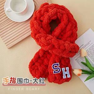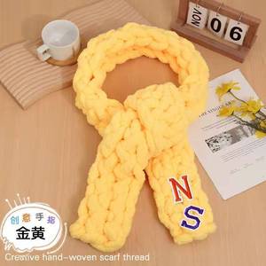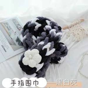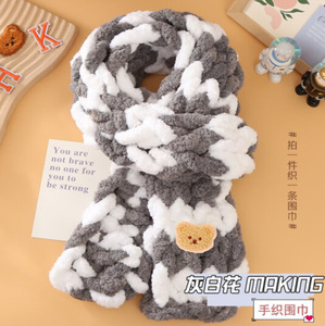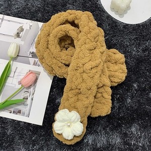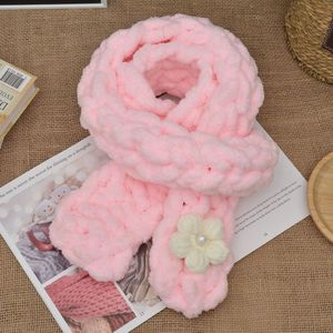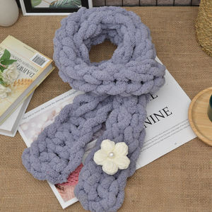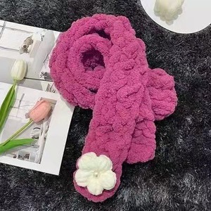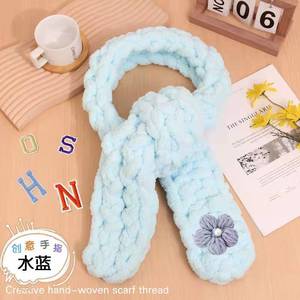 太い毛糸の指編みスカーフDIY素材パック、手編みパフフラワー猫の尻尾糸、指編み手織り