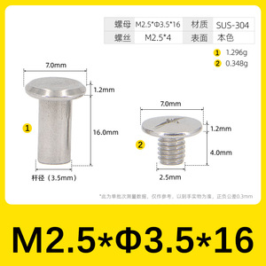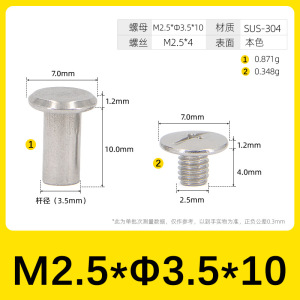 304ステンレス突合せセルフロック子母リベット十一字溝子母ねじ平頭斜辺ナットM2-M5