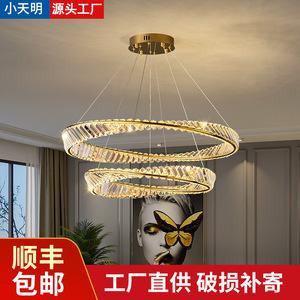 クロスボーダーライト高級クリスタルシャンデリアモダンシンプルリビングルームランプホールメインランプ3サークルリングイタリアのミニマリストレストランランプ