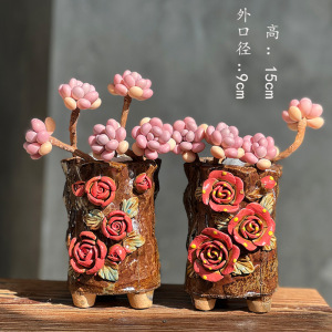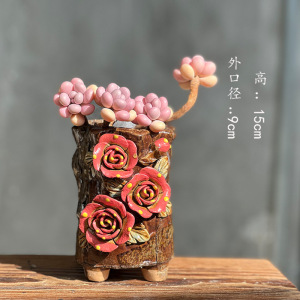 新型つまみ麦飯石多肉植木鉢陶磁器粗陶吸水通気老杭創意多肉植物レトロ