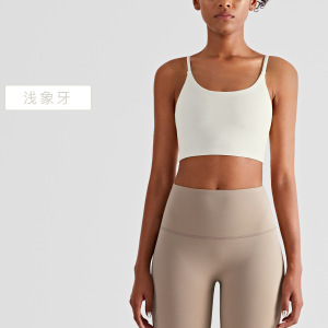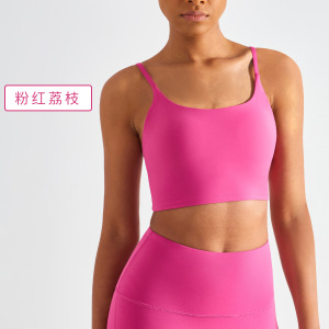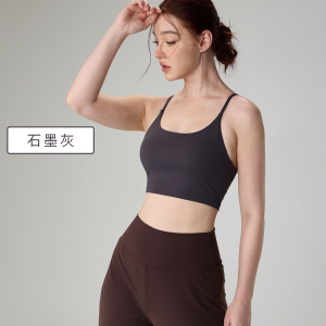 Huanpan ライクラヨガブラ、美しいバックサスペンダー、ピラティス、胸パッド、スパゲッティストラップ、ハイエンドフィットネススポーツブラ