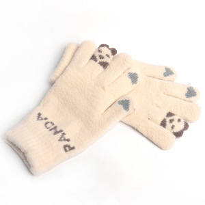 冬の保温手袋の漫画の指の熊のかわいい手袋の女性のメリヤスとベルベットの指の手袋は手袋の卸売りに乗ります。