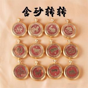 メーカー黄銅朱砂十二生肖本命年ペンダント金回転ハンドルキーホルダー回転ストラップ