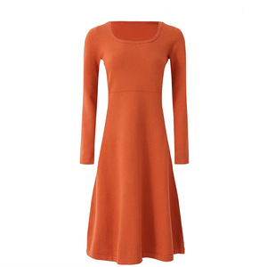 秋冬のフランスのレトロなロングスタイルのロングスカートは、やせた襟にコートをつけた黒い長袖ニットワンピースを見せている