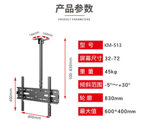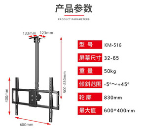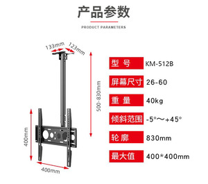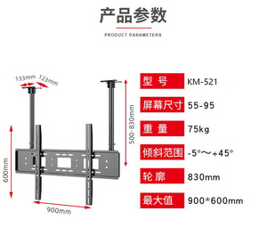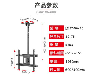 ユニバーサルテレビ回転天井吊り下げブラケット 高さ調節可能 広告用モニター天井ブラケット