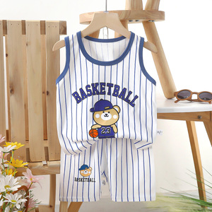 子供ベストセット純綿女の子夏服韓国風子供服新 2025 夏男の子ツーピースセット卸売