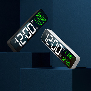 クロスボーダーled鏡面振り子台音制御目覚まし時計家庭用音楽電子時計壁掛けデジタルカレンダー時計メーカー