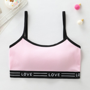 夏の薄いタイプの胸の発育の思春期のベストの女子小学生の中学の少女の高校生の下着の運動のブラジャー