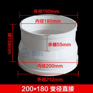 Pvc 180mm排煙管継手直接エルボ三方180*160異径サイズの台所油煙吹出口
