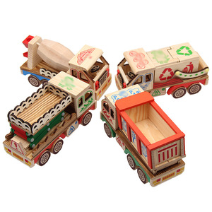 木の工事の車の木製のおもちゃのミニ都市の工事の車の置物の模型のセットの組み合わせの贈り物の箱の卸売り