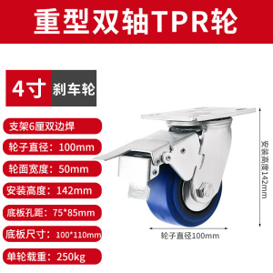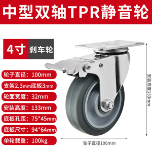 4インチ重 * 自在ブレーキ車輪 (スタンド5.5mm)
