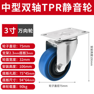 3インチ中型ブルー * ユニバーサルホイール