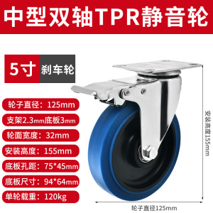 5インチ重 * 自在ブレーキ車輪 (スタンド5.5mm)