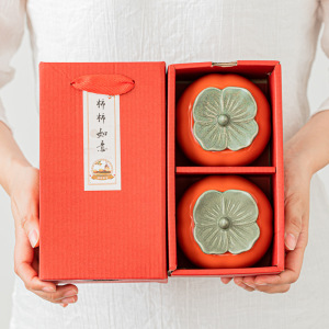 陶磁器茶葉缶万事如意トランペットミニ喜糖糖果缶柿密封缶ギフトボックス彫刻お土産