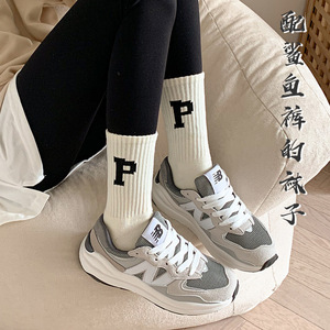 ウールソックス子供秋冬insファッション韓国風スポーツサメズボンコーミングコットンpアルファベット中筒タオルソックス