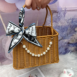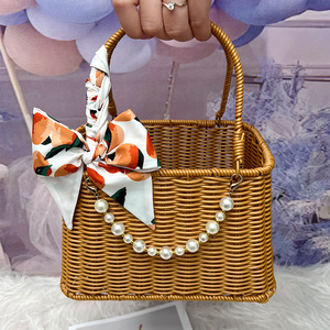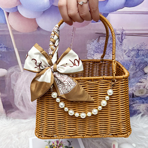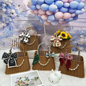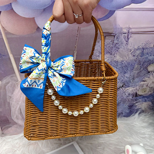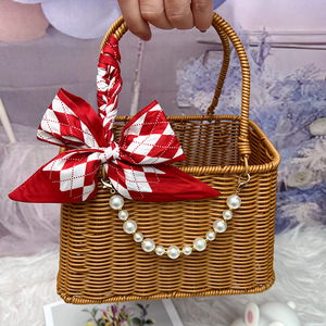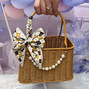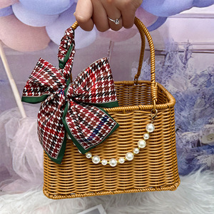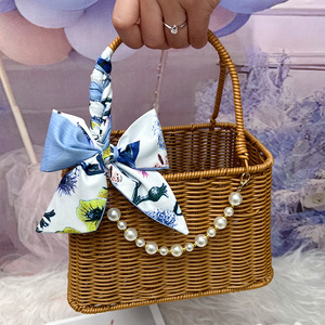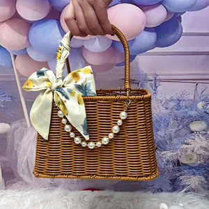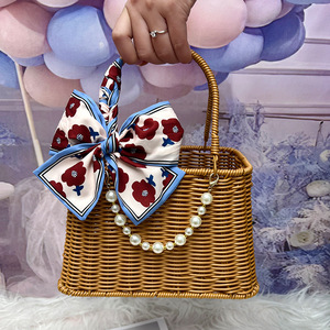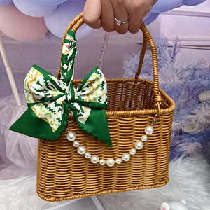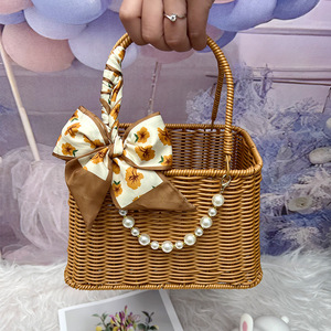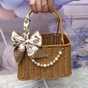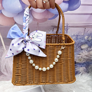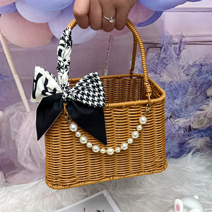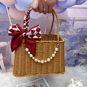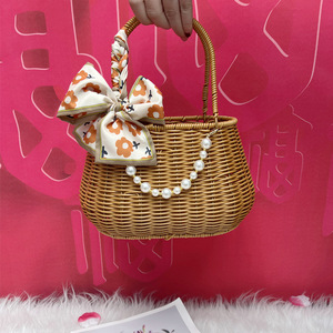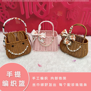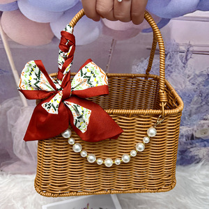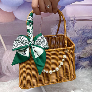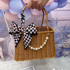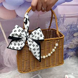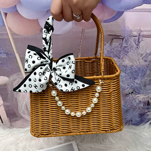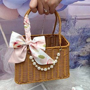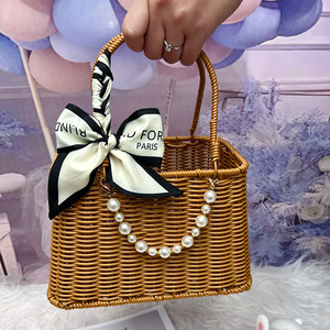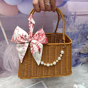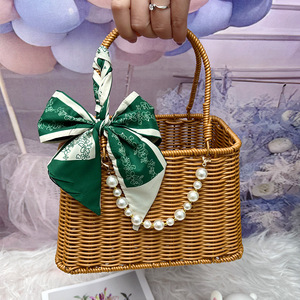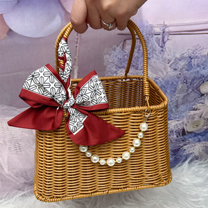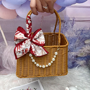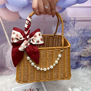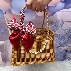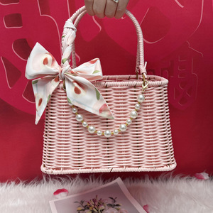 ピンクの手提げかご19号蝶結びの新型ビーズチェーン