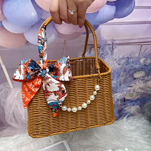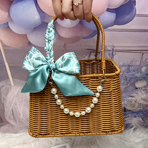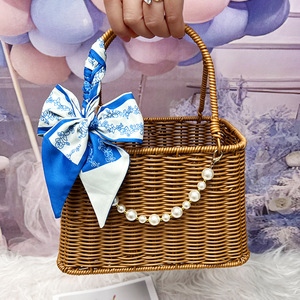 クラシックギフトブルー模造籐編みお土産ハンドバスケット収納バスケット写真撮影小道具収納バスケット結婚式のお返しギフトブルー