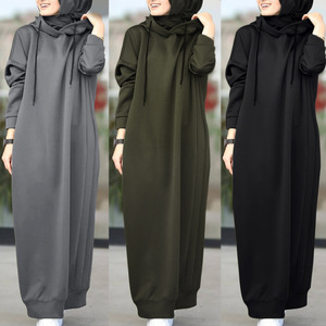 ムスリムの秋の婦人服の純色の毛の綿毛の布は帽子をつないでひものゆったりしているカジュアルなポケットの長袖の女性のカーディガンの女性を引き出します。