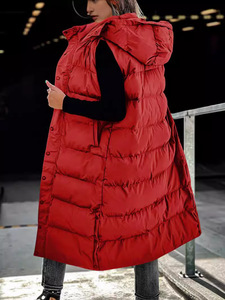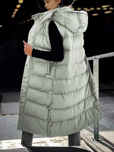 2025年欧米風無地ロング丈ベストフード付きトップスレディースカジュアルファッションジッパー片開きコート