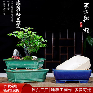 メーカー卸売り紫砂植木鉢陶磁器長方形盆栽盆馬溝緑植鉢植え氷裂釉盆高級対外貿易