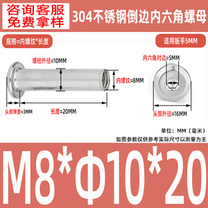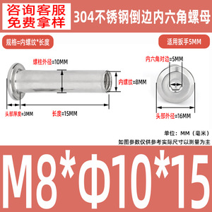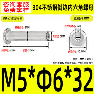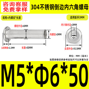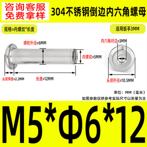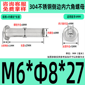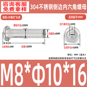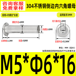 304 ステンレス鋼の面取り六角穴付きナット M2-M10 ロックネジ、平頭面取り六角穴付きスプリングナット