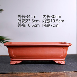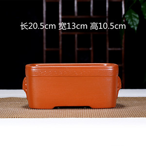 宜興紫砂植木鉢粗陶長方形盆栽盆多肉微景観盆栽獣頭文堂盆中国風新型