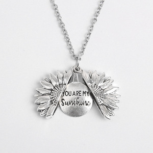 クロスボーダーの新型欧米のアクセサリーの合金はひまわりの刻まれたアルファベットを開けて黒いネックレスを塗ることができます。