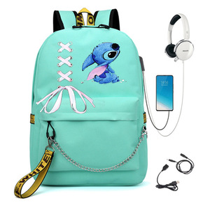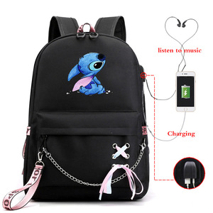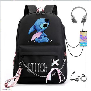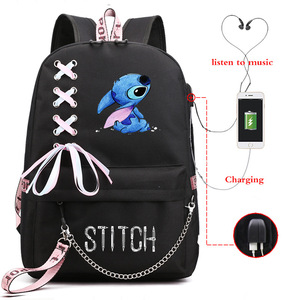 国境を越えた新しい星の宝物スティッチの模様USB鉄の鎖の女子学生はかばんのリュックサックを持っています。