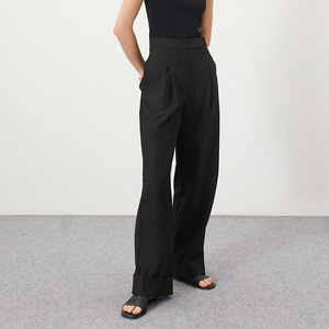 2025秋の新作カジュアルパンツ、ヨーロッパとアメリカの万能通勤ワイドレッグフロアレングスパンツ、女性用ルーズハイウエストリトルブラックパンツ