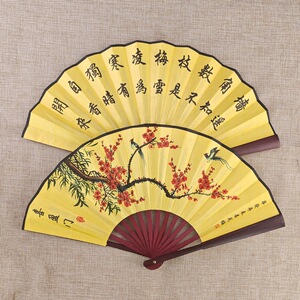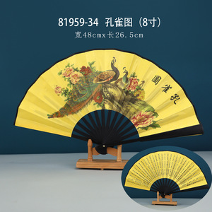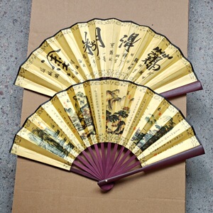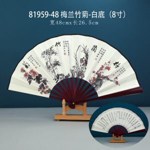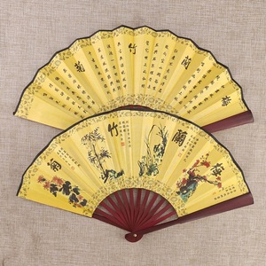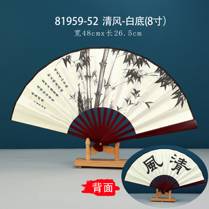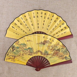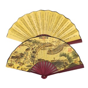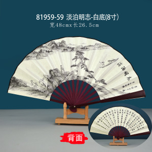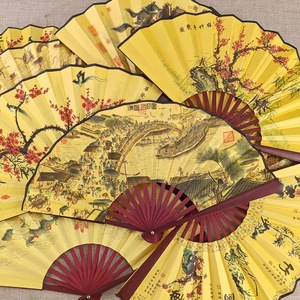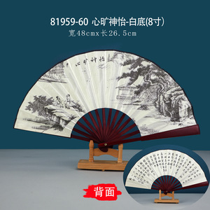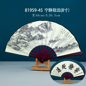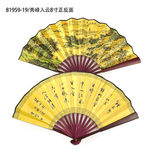 8インチ中国風男扇絹布両面カラー印刷水墨山水竹製骨格夏納涼扇子卸売り