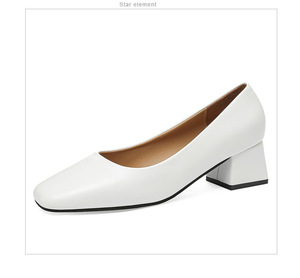 2025年春新作 レディースシューズ 韓国風 シンプルでおしゃれなスクエアトゥ 浅履き 太ヒール 中ヒール レディースファッションシューズ