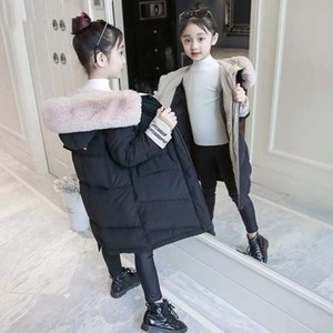2025年冬新作 女の子用コットンコート 韓国風 中高生向け ロング丈 厚手 大きなファー襟 大きなポケット付きコットンコート