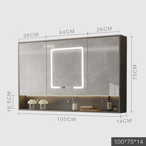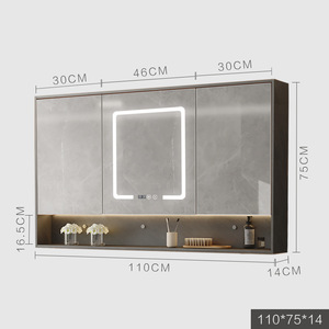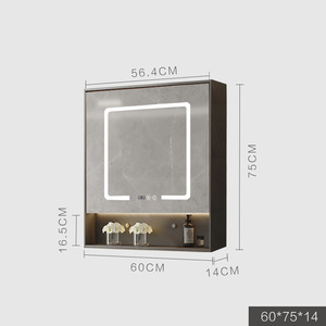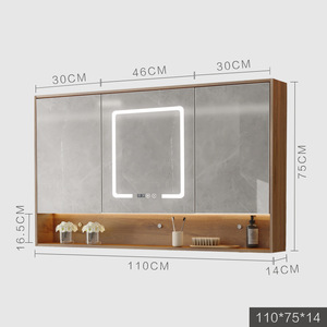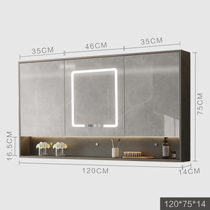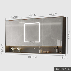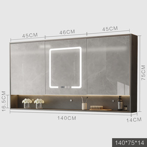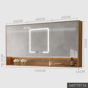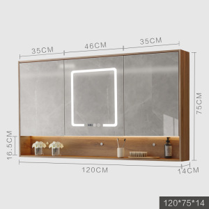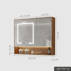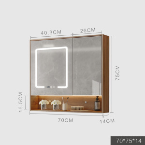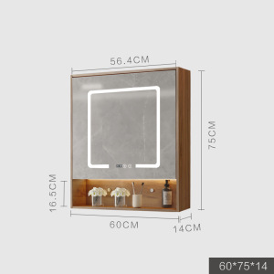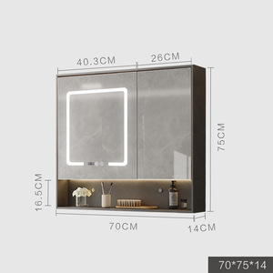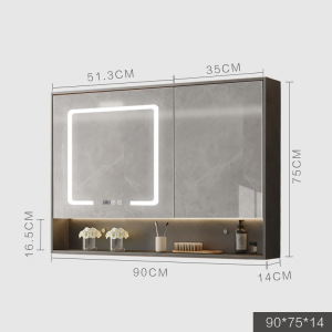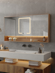 BOLEN伯倫スマートLEDライト付きオープングリッド鏡棚壁掛け式浴室鏡収納棚トイレ鏡
