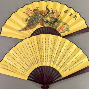 8寸男扇古風扇子中国折扇赤骨絹布扇子古代男はいつでもダンス扇子の道具を持っています。
