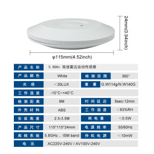 5.8ghzハイパワー負荷コードレーダー誘導スイッチ超薄型空飛ぶ円盤吸頂明装マイクロ波センサ