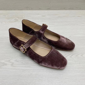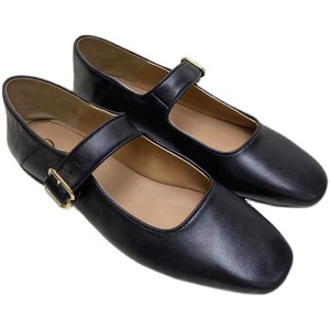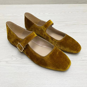 2024春秋 マリージェーンシューズ ジンジャーイエロー ベルベット スクエアトゥ フラットシューズ レディース カジュアル バックル付き