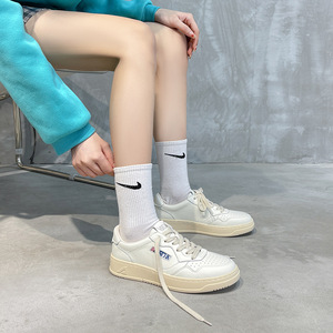 2024 秋の新カジュアルシューズ厚底白靴女性韓国世代学生ラウンドトゥレースアップファッションニッチスニーカー