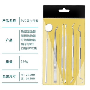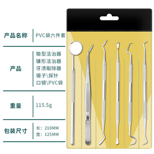Pvc六点セット【鏡・プローブ・ピンセット・鎌型・鋤型・甲抜き器】