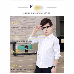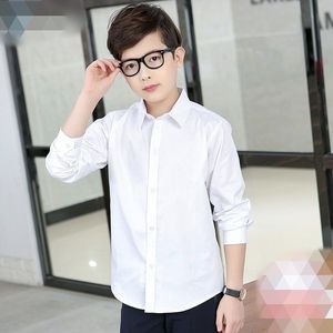 子供服の男の子の白い長袖のシャツの中で大きい子供の春夏のタイプの学生はシャツの子供の制服の15歳の半袖を演じます。