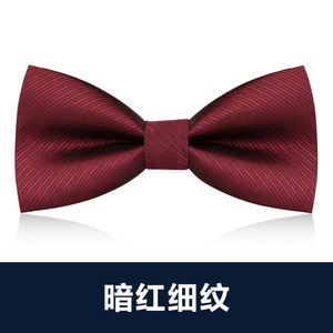 男性は男性の連れ合いの新郎のワインの赤色の黒色のネクタイの正装の結婚の結婚式の英倫の韓国版の蝶結びを結びます。