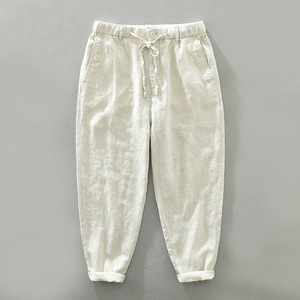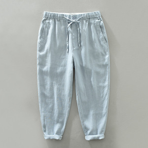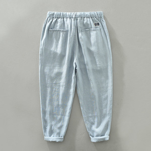 1632カジュアルなズボンの男性の薄いタイプのゆったりしたストレートの亜麻のズボンのファッションの文芸は腰の9分のズボンの男性の代行を緩めます。